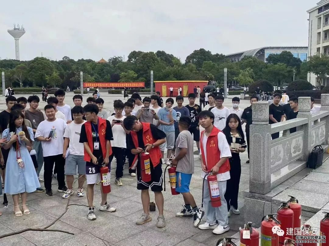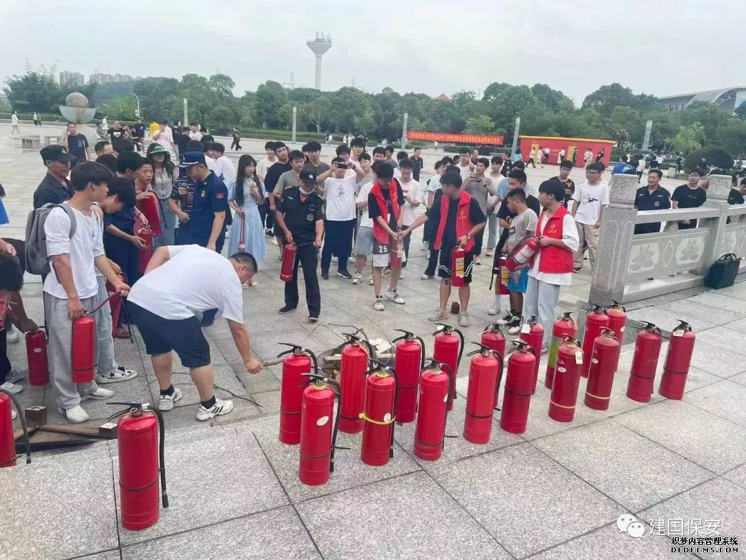 6月9日上午,湖南建囯保安服务有限公司驻学院项目经理夏三杰率领全体安保人员积极配合学校保卫处、市消防应急管理局等单位进行紧急出动、消防器材保障、消防知识学习、示范性使用消防器材等科目,共18000余名师生在学校图书馆附近空旷地上,进行了消防器材使用演练。