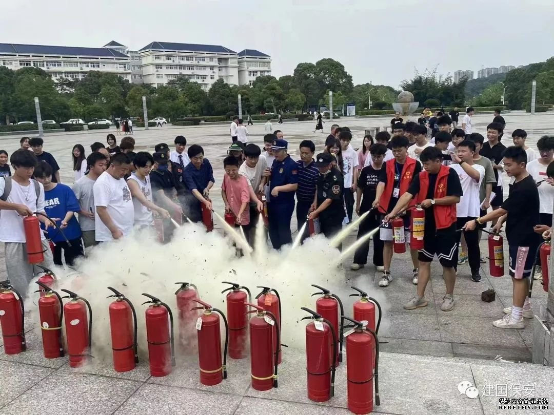 湖南建囯保安服务有限公司驻岳阳职业技术学院安保队伍始终贯彻“安全第一,预防为主”的方针政策和“以人为本”的思想意识。近年来,他们进行经常性的消防知识学习、消防技能培训,目的是为了进一步加强学校安全工作,增强学校师生消防安全技能,提高学生应对火灾的应急扑救处置能力。
