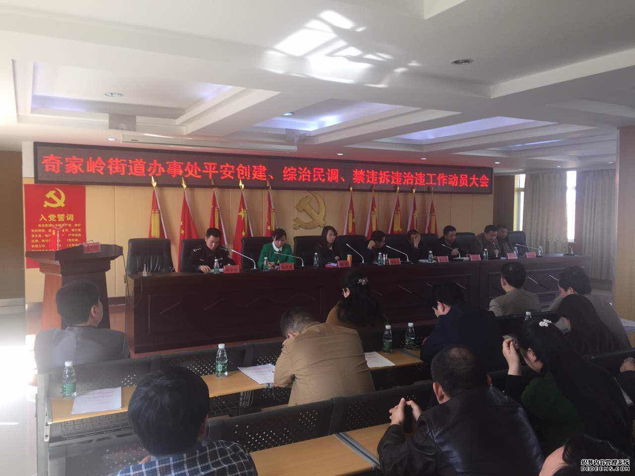 2015年4月14日奇家岭街道办事处平安创建、综治民调、禁违拆违治违工作动员大会在奇家岭街道办事处七楼会议室召开!建囯保安董事长蔡建囯、民族学院后勤处夏思鸿教授代表政协委员参加!奇家岭街道党工委书记郭韶山、政协主任顾萍、瞿法林、廖增洪、吴飞跃、姚勇正、杨霞霞、刘金瑞等领导参加!还有人大代表及理工学院领导参加!