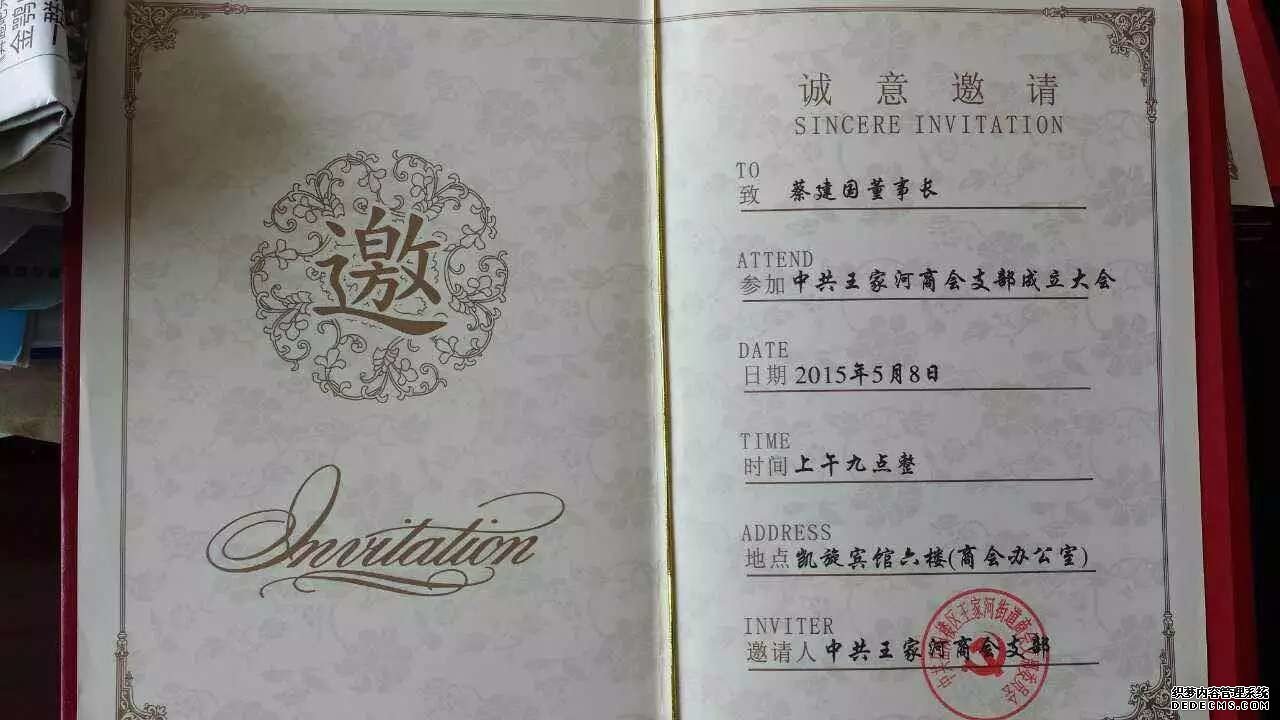 2015年5月8日岳阳市岳阳楼区王家河商会党支部成立大会在凯旋宾馆举行,建囯保安董事长、岳阳楼区非公党委委员蔡建囯及市、区、街道的领导参加,共同见证支部成立!祝愿王家河商会及党支部前途无量、事业红火!