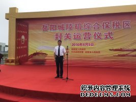 2016年8月9日,岳阳城陵矶综合保税区封关运营仪式由省人民政府副省长何报翔宣布正式封关运营,市委书记盛荣华、市长刘和生、市委副书记李志坚等领导出席了仪式,省、市海关领导参加,活动全程安保由建囯保安担任,圆满出色地完成了任务!建囯保安 保您平安!