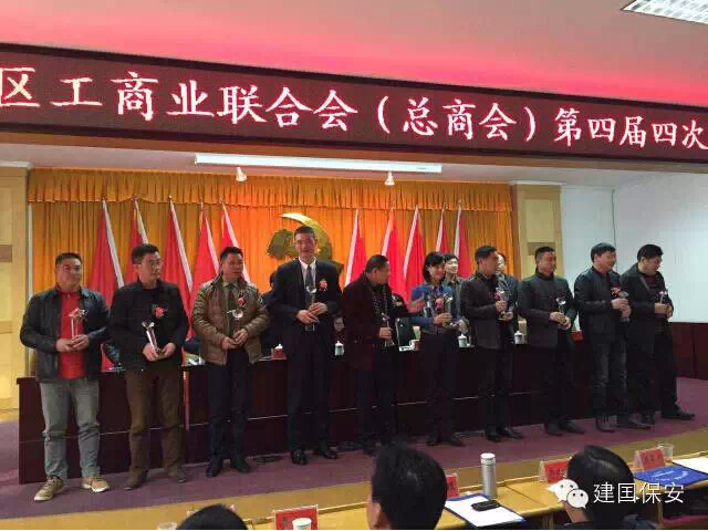 区委书记秧励、市政协副主席市工商联主席刘𣇈英、区人大主任贺景福、区政协主席王梦华、区委常委常务副区长漆胜到会!区工商联主席刘岸芳作工作报告、到会领导有区委统战部副部长区工商联党组书记许越波、区委常委宣传部统战部长钟辉、区委副书记尤庆学、区组织部副部长陈金星、工商联副主席丁平、彭芳奇等到会!恭喜建囯保安荣获优秀会员单位、集团公司董事长蔡镇业被评为优秀会员、建囯保安礼仪护卫队担任此次会议的礼仪及护卫工作!